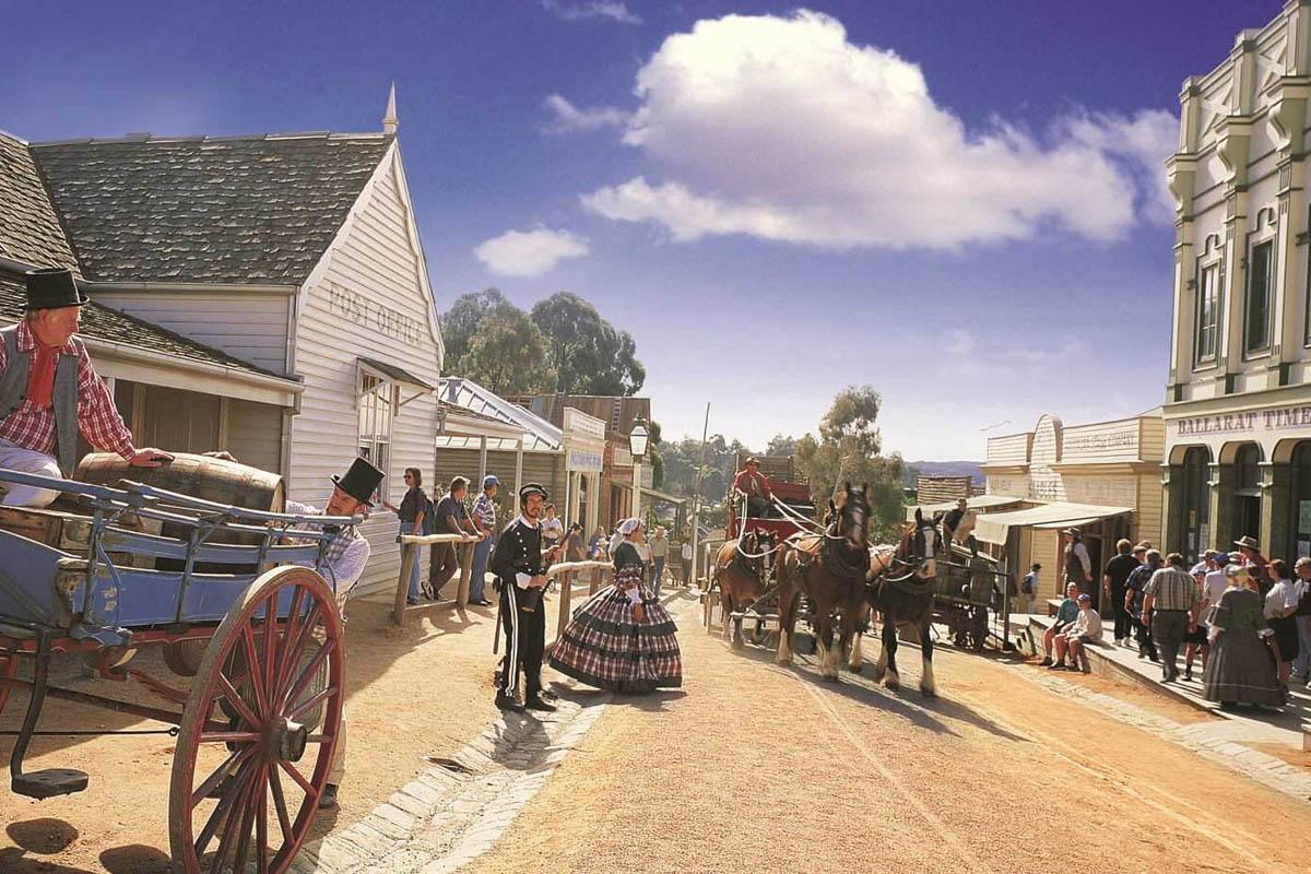 Обзорная экскурсия по Мельбурну. Поездка в город золотоискателей Балларат и парк Соверен Хилл, посвященный эпохе золотой лихорадки. Возвращение в Мельбурн. Ночь в отеле.