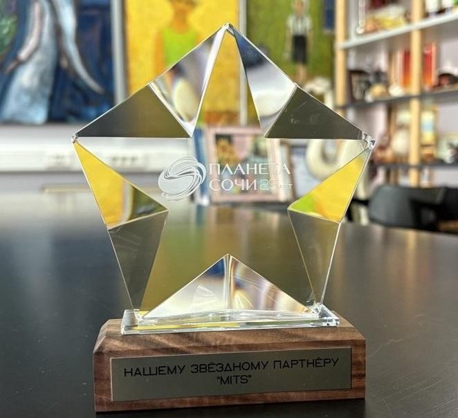 Награда "Нашему звездному партнеру MITS" от принимающей компании "Планета Сочи" (ноябрь 2025)