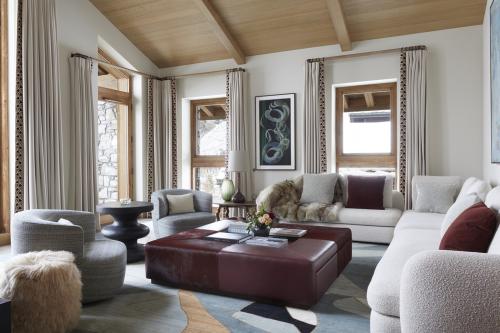 Площадь – 269 кв.м. Шесть спален (пять спален с двуспальными кроватями, детская спальня с двухъярусной кроватью), шесть ванных комнат, гардеробные, гостиная с камином, обеденной зоной и полностью оборудованной кухней, спа-зона с крытыми подогреваемым бассейном и джакузи, две террасы. Максимальное число гостей – 12 человек (10 взрослых и 2 детей).