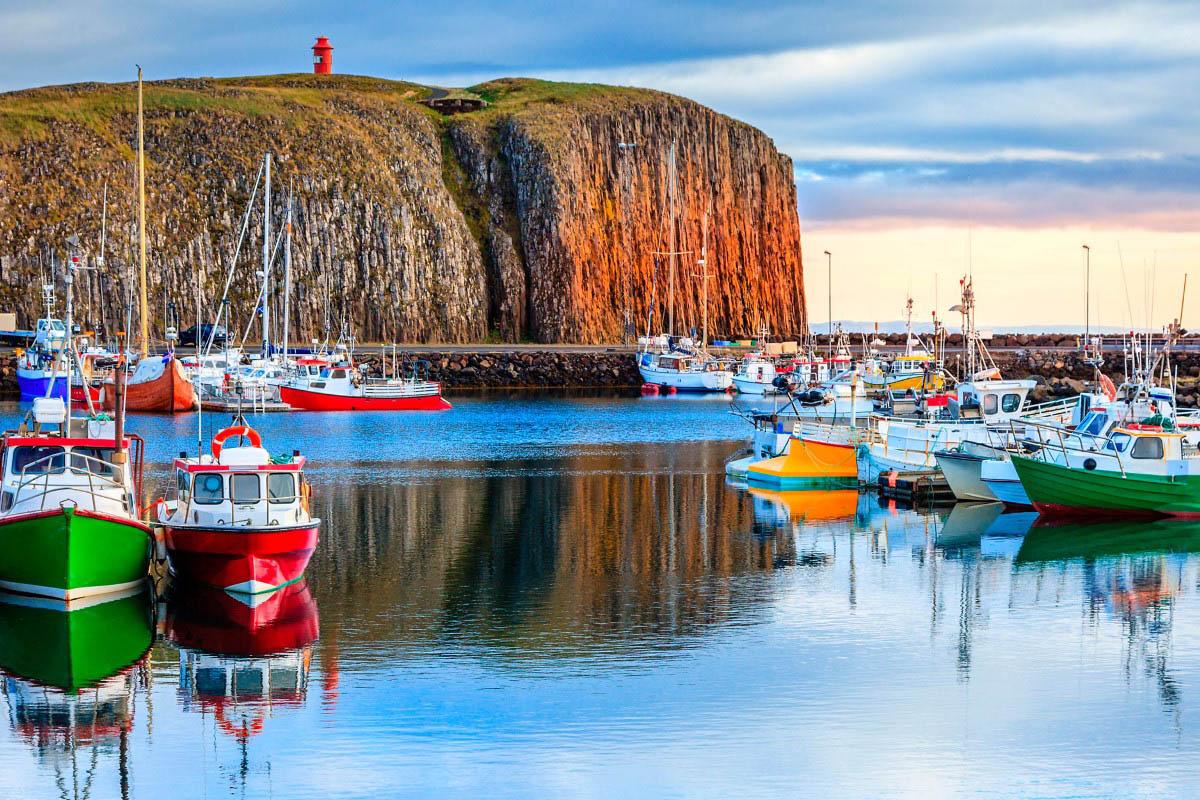 Из прибрежного городка Стиккисхольмур Вы отправитесь в круиз по заливу Брейдафьордур. Южные острова Брейдарфьордура известны крупными популяциями редких птиц. Один из самых запоминающихся моментов круиза – рыбалка, когда капитан забрасывает сети, и вытаскивает свежайшие морские деликатесы (мидии, морские гребешки), которые можно продегустировать.