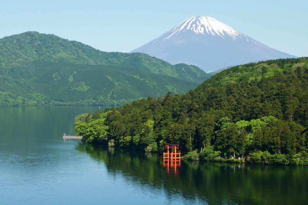 Природный парк Хаконе – это удивительное место, край живописных озер, бурлящих гейзеров и горячих источников, окутанный легендами и невероятными историями. Канатная дорога поднимается от берегов озера Аси по склону горы Камияма к знаменитым гейзерам долины Овакудани. Над склонами поднимается пар, в водоемах кипит мутная вода, а в воздухе витает запах сероводорода. По озеру Аси, имеющему вулканическое происхождение, курсирует пиратское судно, с палубы которого можно полюбоваться возвышающимися холмами и горами, стоящими в воде у берегов священными вратами (тории) и горой Фудзи, находящейся неподалеку.