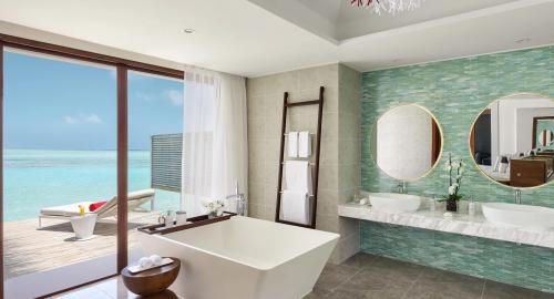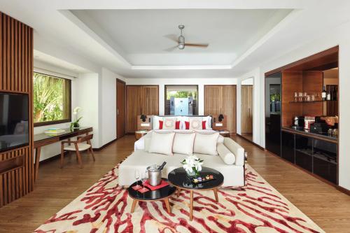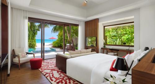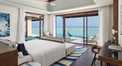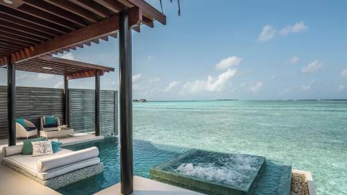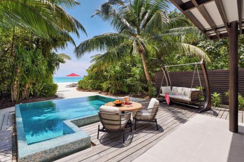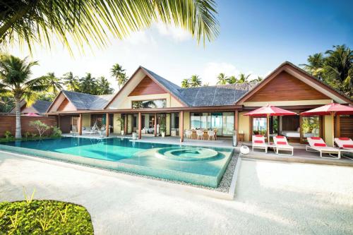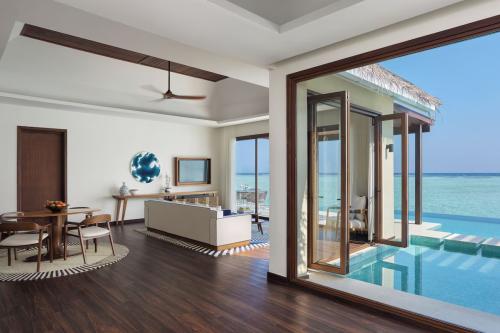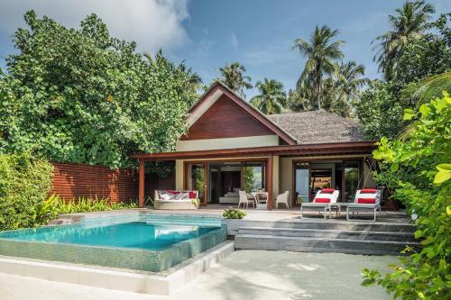 Площадь – 175 кв.м. Вилла над водой, с видом на лагуну. Спальня с кроватью king-size, зона отдыха, ванная комната, терраса с обеденной зоной, диваном и шезлонгами, бассейн, спуск в лагуну. Максимальное число гостей – 3 взрослых и 1 ребенок.