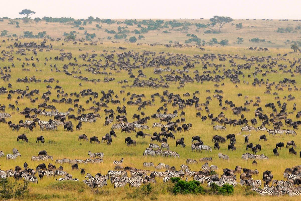 Каждый год примерно 1,5 миллиона антилоп гну (белобородые антилопы), 250 000 зебр и полмиллиона газелей передвигаются по территории Серенгети – Мара, преодолевая расстояние в более чем 1500 км. На протяжении всего пути их все время сопровождают хищники, в основном, львы и гиены, в то время как орлы стервятники следят за ними с высоты птичьего полета.