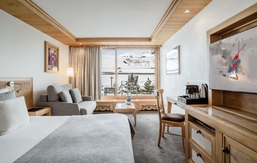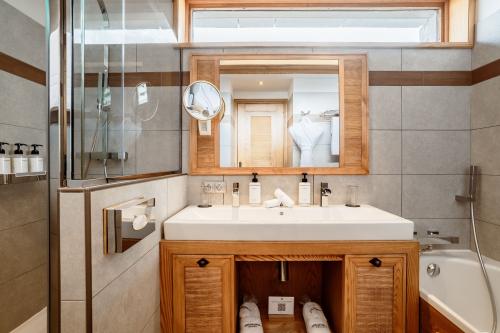 Площадь – 56 кв.м. Вид на юго-запад. Две спальни с кроватями king-size, две ванные комнаты, балконы с видом на горы и склоны (юго-запад). Максимальное число гостей – 4 человека.