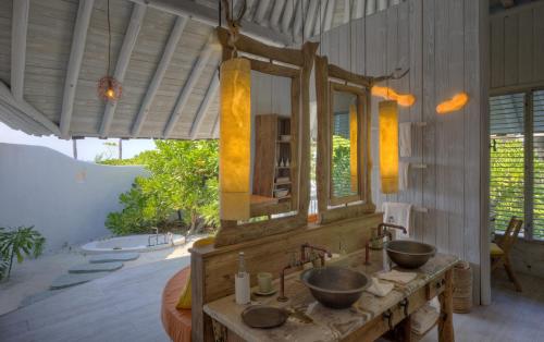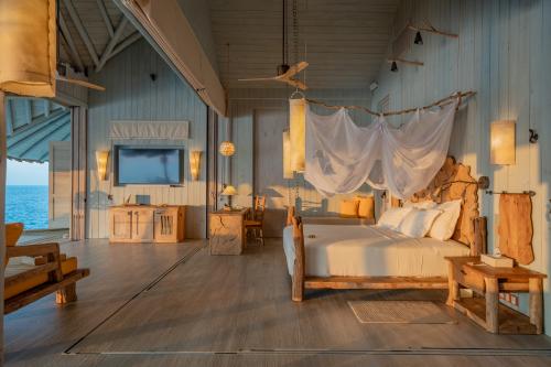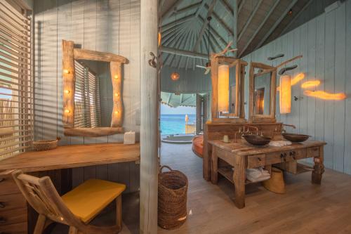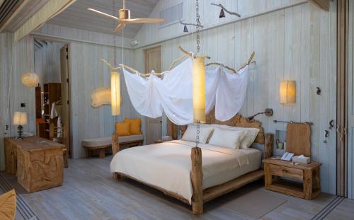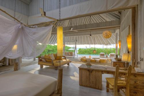 Soneva Secret предлагает для размещения надводные и пляжные виллы площадью от 461 до 1158 кв.м. Все виллы – с прямым доступом к пляжу или лагуне, раздвижной крышей для наблюдения за звездами и собственной спа-зоной. Гостям каждой виллы предоставляется персональный сервис – личная команда из трех человек, в которую входят дворецкий, помощник дворецкого и повар.