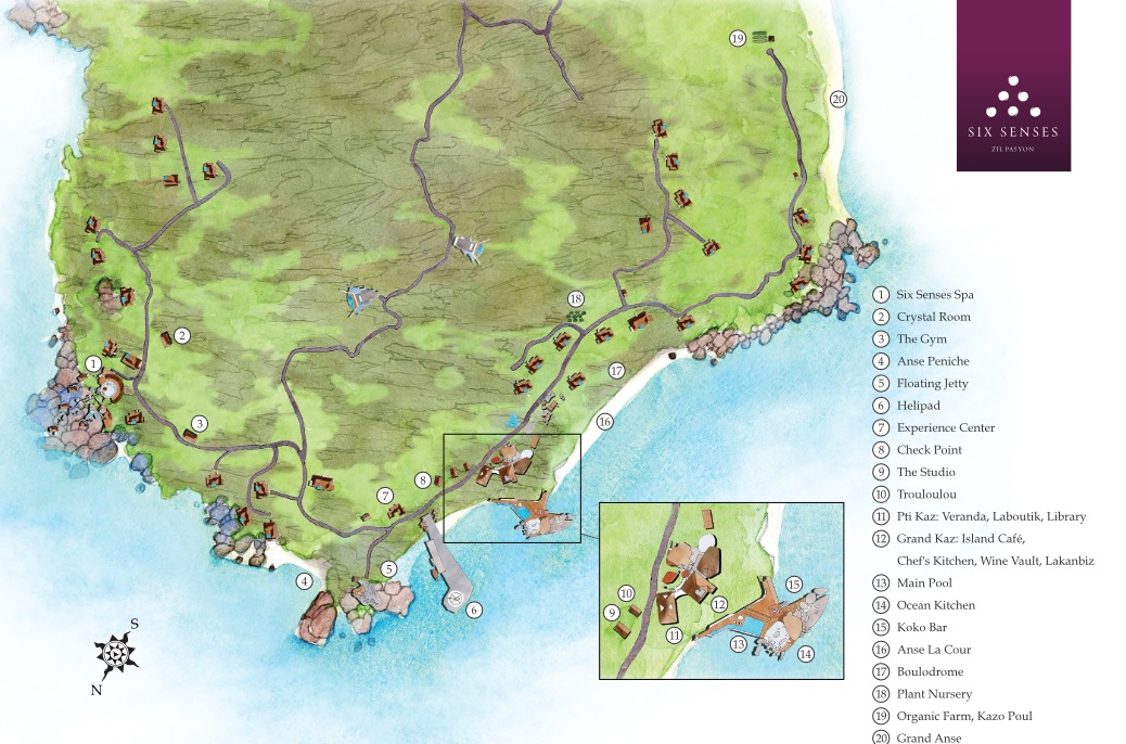 Отель Six Senses Zil Pasyon расположен на северном побережье острова Фелисите, который находится в 55 км к северо-востоку от международного аэропорта Сейшел (о.Маэ). Значительную часть острова занимают территории национального парка Рамос. Добраться до отеля из аэропорта можно за 20 минут – на вертолете с острова Маэ или на скоростном катере с острова Праслин. Six Senses Zil Pasyon предлагает для размещения 28 вилл с одной спальней и 2 виллы с двумя спальнями (все – с собственными бассейнами), а также резиденции с тремя и четырьмя спальнями.