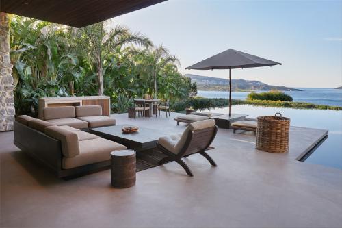 Площадь – 190-215 кв.м. Двухуровневые виллы с видом на море. Спальня с кроватью king-size (на верхнем уровне), гостиная и бар (на нижнем уровне), гардеробная, две ванные комнаты, терраса, открытый инфинити-бассейн. Максимальное число гостей – 2 взрослых, 1 ребенок и 1 инфант.